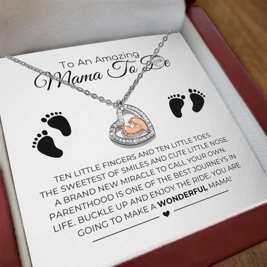 To An Amazing Mama To Be - Baby Feet Heart Necklace